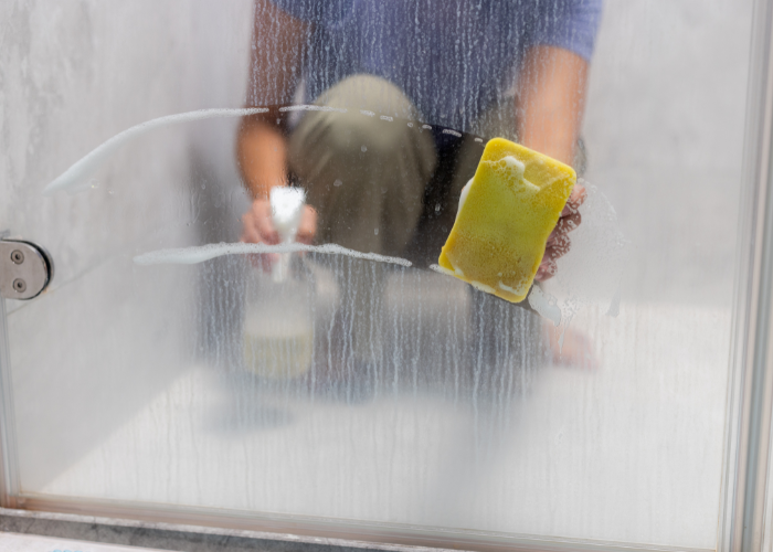 Apply eco-friendly cleaning solutions to remove dirt, dust, smudges, and streaks, followed by polishing for a clear finish.
